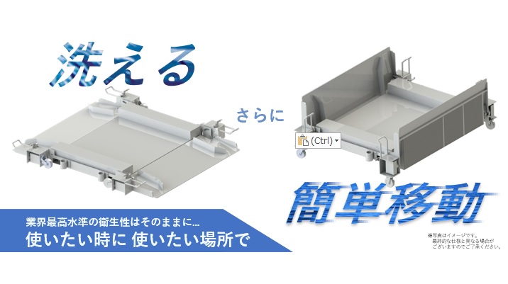 洗えるハカリから、さらに移動が可能に。置くだけ簡単、設置工事無しで必要な時に必要な場所に運んでご使用いただけます。