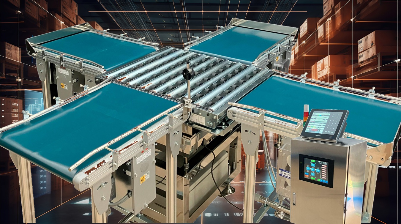 振り分け装置一体型の欠品チェッカー。製品ごとに設定された閾値に対し、不足・良品・過量のチェックを行い、任意の方向に振分け移送します。