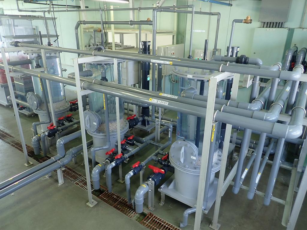 「紫外線海水殺菌装置+PVA物理ろ過+PVA生物ろ過システム」は陸上養殖向けにメンテナンスフリーで自社設計開発した製品群。(特許製品)