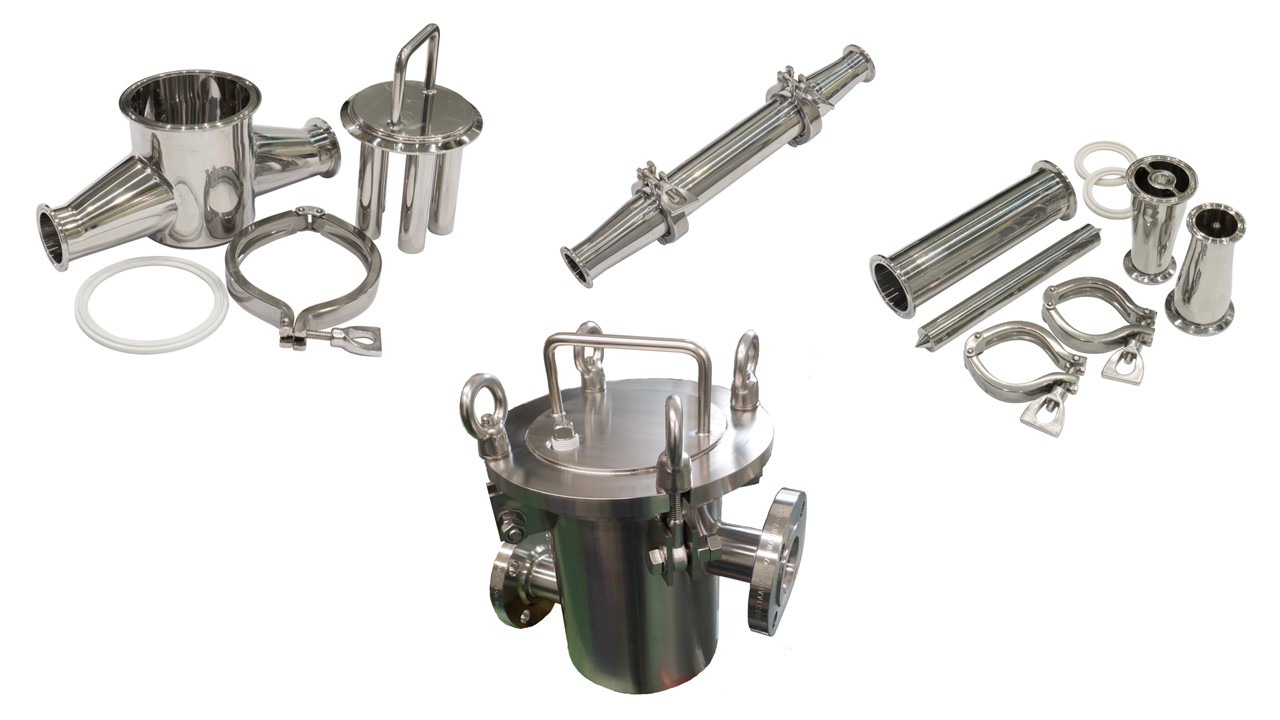 原料が通る配管途中に設置することで、ストレーナーに組まれた棒磁石が鉄粉等の磁性体を吸着させます。