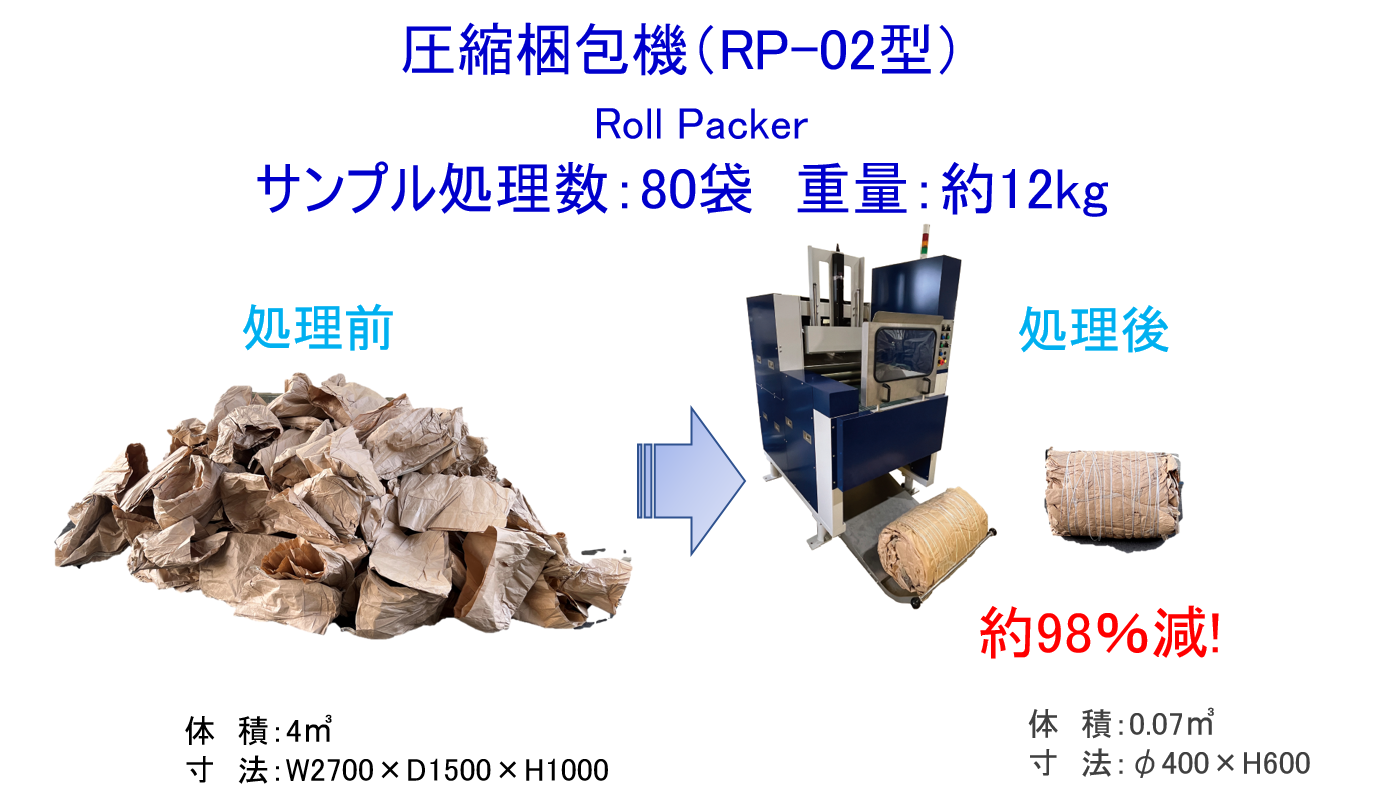 かさばる空袋・ゴミ類をロール状に小さくまとめて梱包! 廃棄物の処理をサポートします。