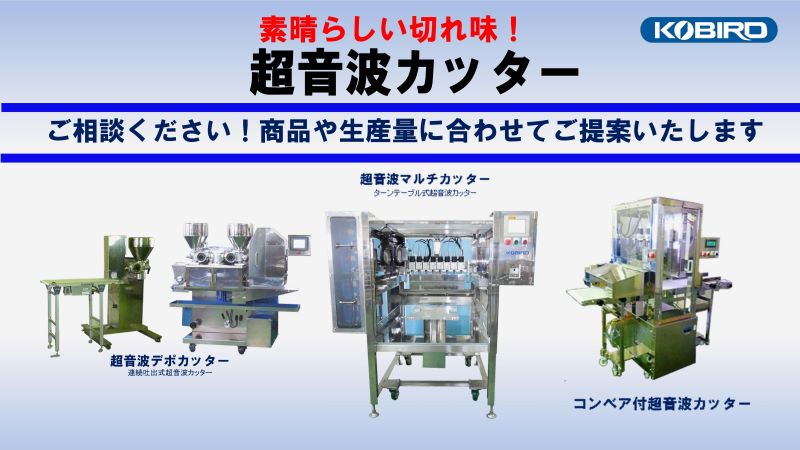 超音波カッターでは洋菓子ケーキや生チョコ、冷凍製品のカット等も実演予定です。