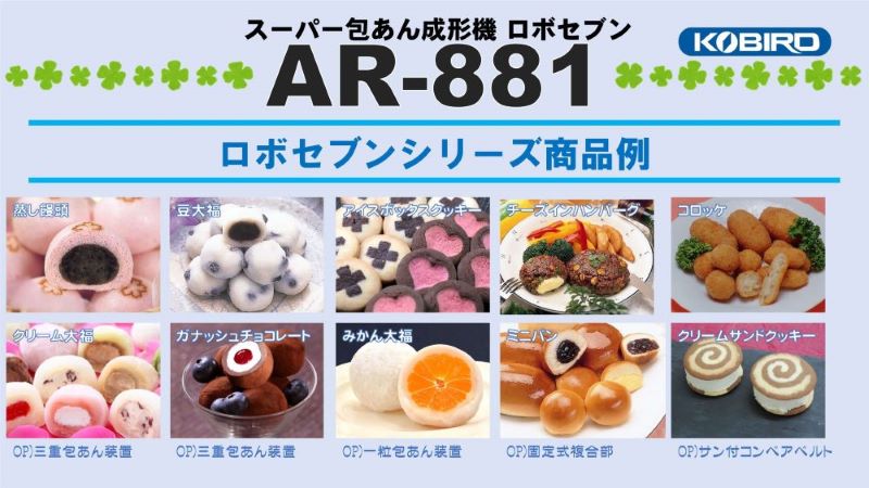 スーパー包あん成形機ロボセブンシリーズは和菓子、洋菓子、惣菜、パン、冷凍食品等あらゆる魅力的な食品の包あん成形が簡単にできます。