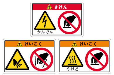 食品製造業の常識となっている「警告ラベルは貼らない」と、貼ってあっても外国人作業者には内容が理解できないことが、外国人労働者の機械災害が増える原因と考えています。食品機械の耐用年数に比べ警告ラベルのそれは著しく短かく、食品への混入防止には必ず貼り替えが必要になります。