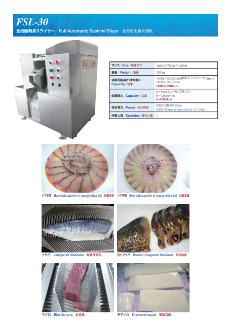 原料をのせる台座の形状や角度を自在に替えられるため、尾部の細かい部分なども高い歩留まりでスライス可能。
