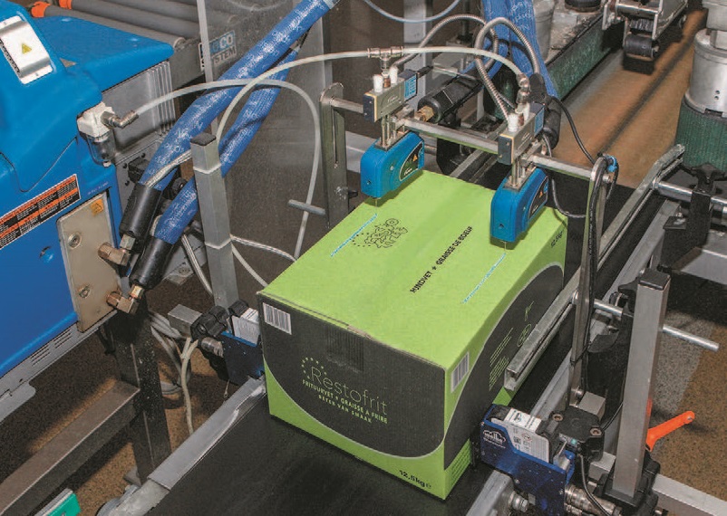 段ボール、重袋、平版包装などの外装にホットメルト接着剤を塗布することで、積み上げた際の荷崩れを防止します。フィルム巻き付けに比べて、プラスチックの消費量やプラスチックゴミ、工数の削減が可能です。