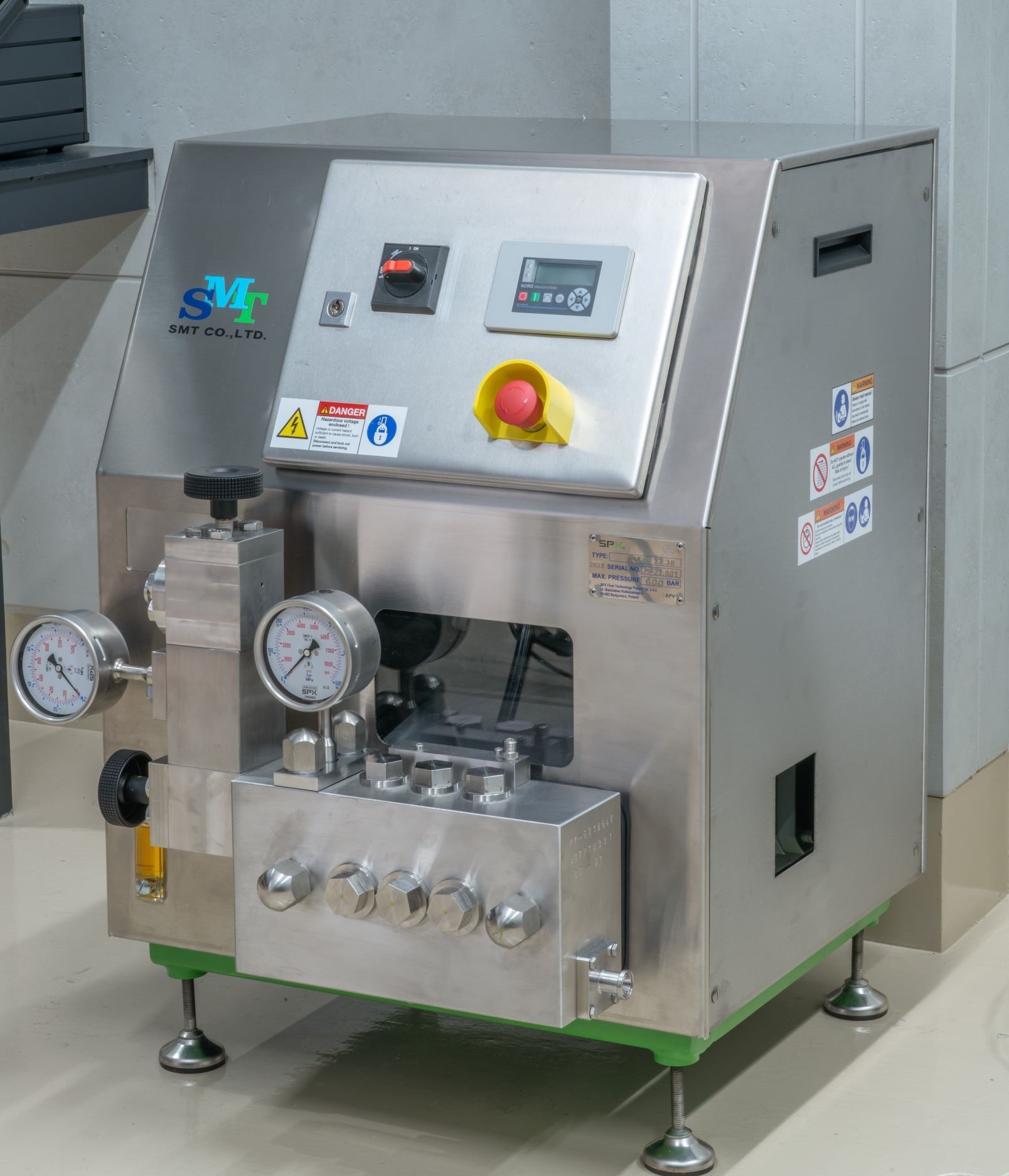 エスエムテーの圧力式ホモジナイザーは、独自開発の内部構造を採用することで、他社製品をしのぐ高性能と安定動作を実現。